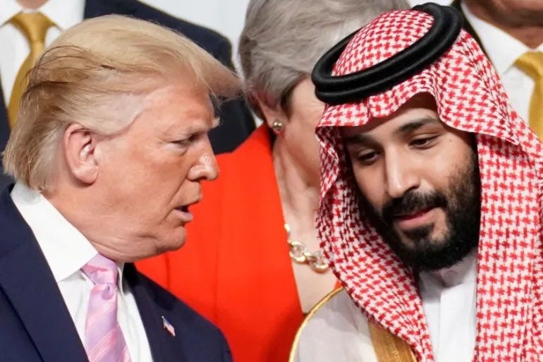Was Trump aber gerne von MBS im Gegenzug hätte, sind Investitionen von 1 Billion Dollar – erst waren nur 600 Millarden angekündigt.3 Woher selbst das reiche Saudi-Arabien die Finanzmittel nehmen will, ist nicht bekannt. Was bekannt ist, dass der PIF das momentan an frei verfügbaren Mitteln eigentlich nicht hergibt.